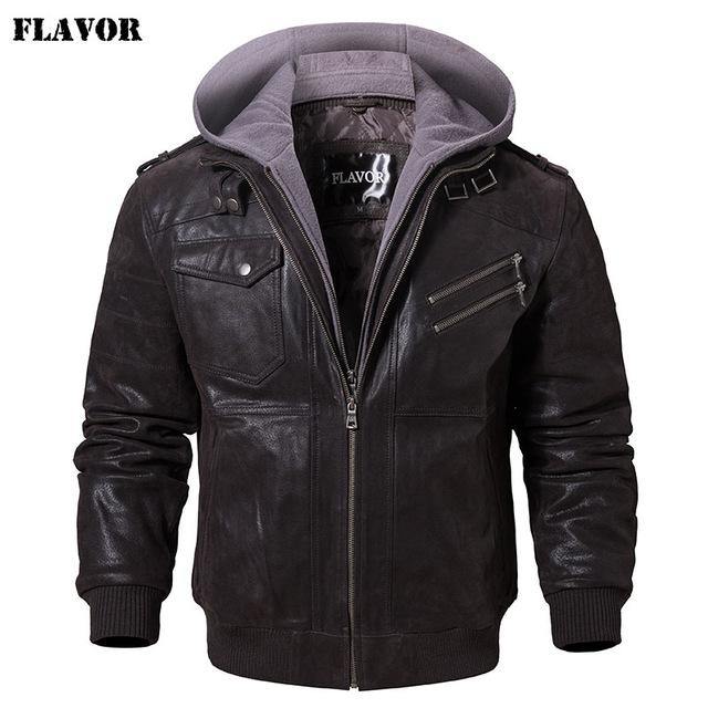 Men's Real Leather Jacket Men Motorcycle Removable Hood winter coat Men Warm Genuine Leather Jackets - My Active Store